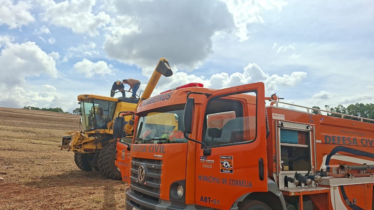 Conforme as informações apuradas, o equipamento apresentou início de incêndio durante o trabalho na lavoura. A situação exigiu resposta rápida para evitar que o fogo se espalhasse pela área rural e causasse maiores prejuízos.