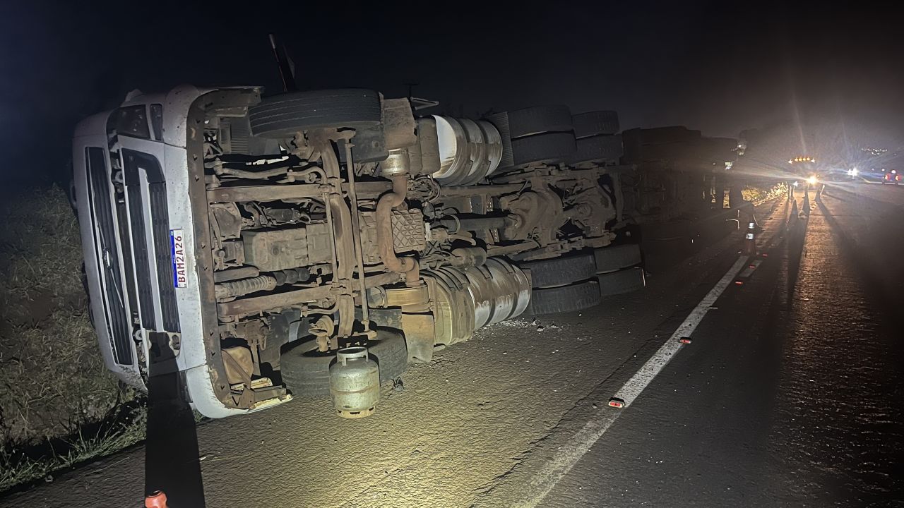 De acordo com as informações apuradas no local, o veículo seguia no sentido a Corbélia quando o condutor relatou ter sido fechado por outro caminhão que trafegava na mesma direção. A manobra teria provocado a saída de pista, seguida pelo tombamento às margens da rodovia.