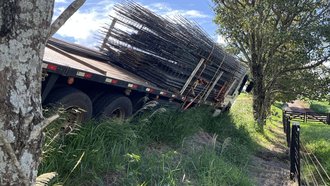 Um acidente envolvendo um caminhão foi registrado na tarde desta quarta-feira na PR-573, no trecho entre Braganey e Corbélia, nas proximidades da comunidade Campininha, a cerca de 6KM de Corbélia.