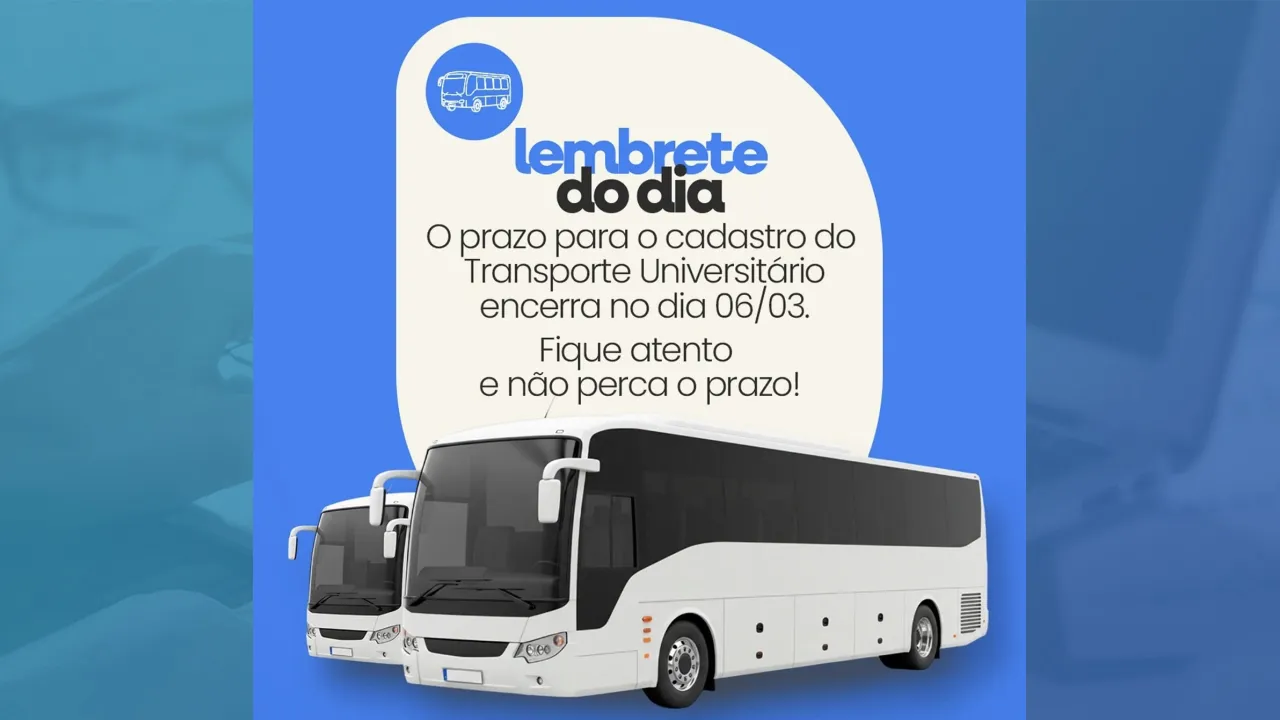 A Prefeitura de Corbélia alerta os universitários do município que o prazo para o pré-cadastro do Auxílio Transporte Universitário encerra no dia 6 de março.