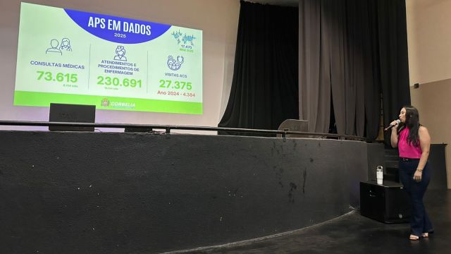 Durante a explanação, foram apresentados números expressivos que demonstram a dimensão do atendimento prestado pela rede municipal. Somente na Atenção Primária, em 2025, foram registradas 73.615 consultas médicas, além de 230.691 atendimentos e procedimentos de enfermagem e 27.375 visitas realizadas por agentes comunitários de saúde.