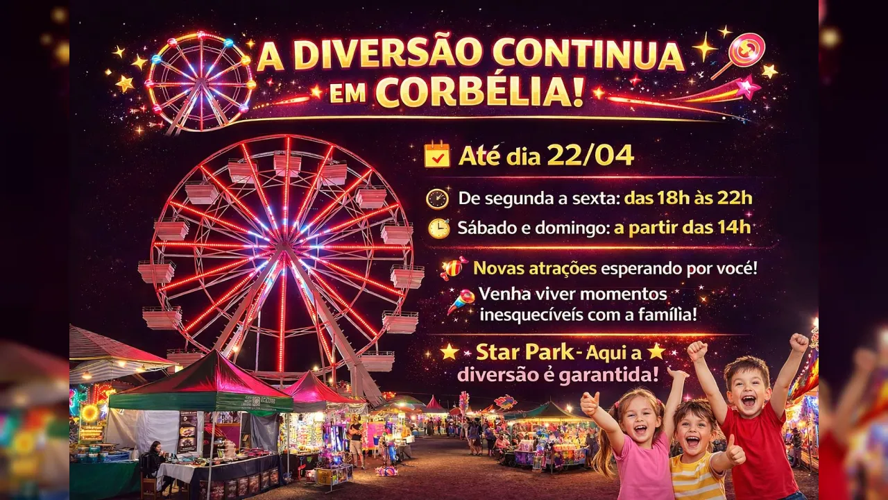 Não perca essa oportunidade. O Star Park fica em Corbélia apenas até o dia 22 de abril. Reúna a família, os amigos e venha fazer parte dessa festa — porque aqui, a diversão é garantida!