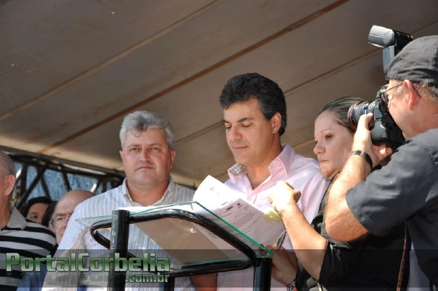 OBRAS – Na Praça Brasil, em Corbélia, o governador autorizou o prefeito do município, Eliézer José Fontana, a dar início a obras de pavimentação, no valor de R$ 519.659,09, e também à construção de um Posto de Bombeiros Comunitários, no valor total de R$ 286.063,32.