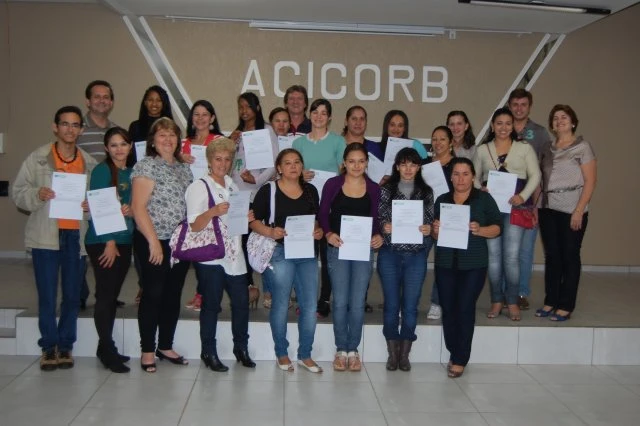 Neste dia 25 de Outubro as três turmas de Operador de Máquina Industrial e os 15 participantes do curso de modelagem receberam os certificados do Senai, garantindo assim a conclusão e qualificação do curso. A solenidade de entrega dos certificados, ocorreu na Acicorb e contou com a presença do Vice-Prefeito Jair Fontana, do Diretor de Indústria e Comércio Marcio Vieira, da Presidente da Acicorb Erica Kummer, da Professora Íris Ribeiro e do Instrutor do Senai Douglas Miranda.